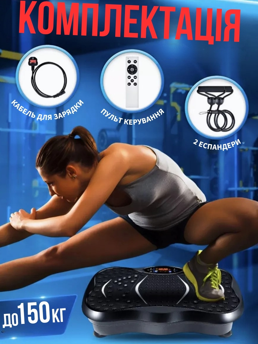 Віброплатформа — це домашній тренажер, який створює рівномірні вібрації для активації основних груп м’язів.Під час використання тіло отримує помірне навантаження, що сприяє підтриманню фізичної активності.Пристрій має 12 програм і 99 рівнів інтенсивності, що дозволяє налаштувати роботу під власні потреби.Пульт дистанційного керування допомагає зручно змінювати параметри під час тренування.LED-дисплей відображає час, режим і рівень вібрації для контролю процесу.Bluetooth-з’єднання дає можливість слухати музику або аудіокниги під час занять.